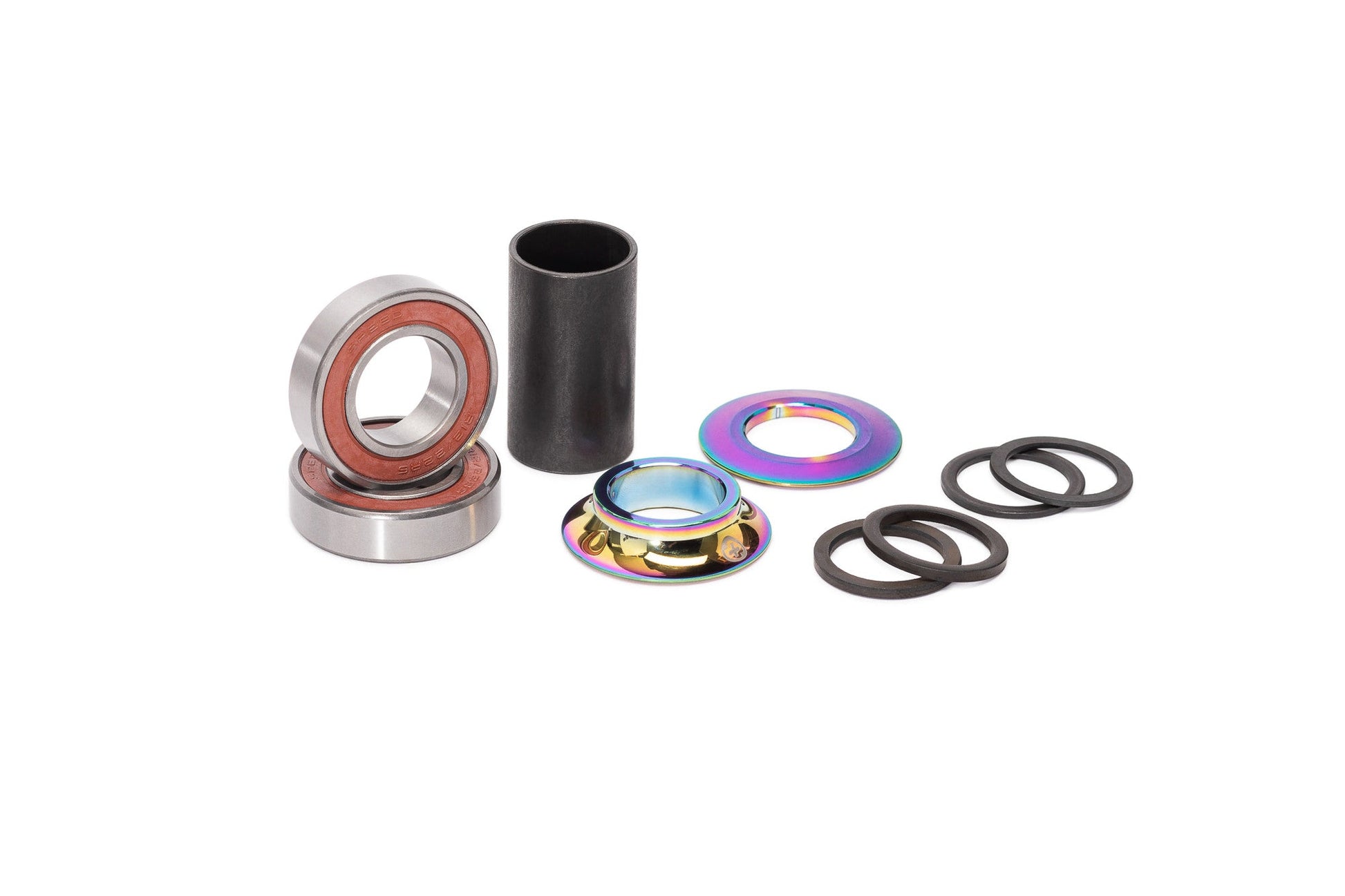 High-end mid sized BB kit. The spacer will increase the longevity of the bearings as well as help with crank flips if thats your thing, so yeah, don't leave it out...